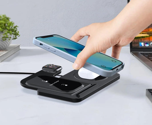 Simplify your charging routine with this all-in-one station. Power up your smartphone, smartwatch, and earbuds simultaneously. Its compact design declutters your desk, ensuring your devices are always charged and ready to go.