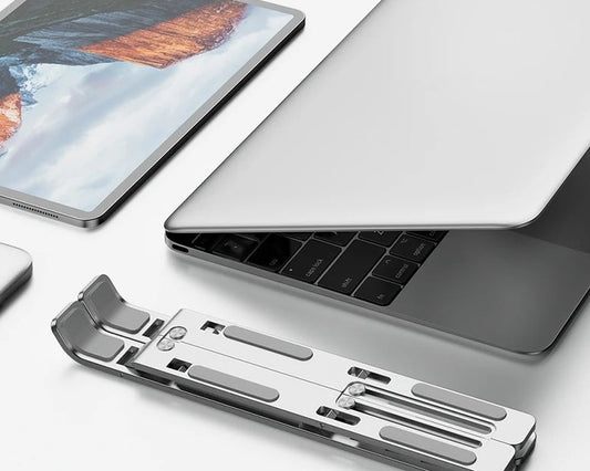 Ergonomically designed for comfort and productivity, this stand elevates your laptop to the ideal height. Crafted from durable aluminum alloy, it’s lightweight yet sturdy, offering both style and stability while you work.